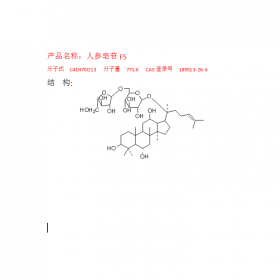 相關(guān)產(chǎn)品: 編號 中文名稱 英文名稱 CAS登陸號 純度 規(guī)格 A1038 人參黃酮苷 Panasenoside 31512-06-8 ≥92% 20mg/支 A1040 人參皂苷Ra3 Ginsenoside Ra3 90985-77-6 ≥98% 20mg/支 A1027 人參皂苷Ra2 Ginsenoside Ra2 83459-42-1 ≥ 95% 20mg/支 A1025 人參皂苷Ra1 Ginsenoside Ra1 83459-41-0 ≥98% 20mg/支 A0460 (R型)原人參二醇 20(R)Protopanaxdiol 補(bǔ)充中 ≥ 95% 20mg/支 A0251 人參三醇 Panaxatriol 32791-84-7 ≥ 98% 20mg/支 A0250 人參二醇 Panaxadiol 19666-76-3 ≥ 98% 20mg/支 A1363 人參皂苷Ra6 Ginsenoside Ra6 1346522-89-1 ≥ 98% 5mg/支 A1362 人參皂苷Rs1 Ginsenoside Rs1 87733-67-3 ≥ 98% 5mg/支 A1361 20-葡萄糖基-人參皂苷Rf 20-gluco-ginsenoside Rf 68406-27-9 ≥ 98% 10mg/支 A1343 西洋參皂苷R1 Quinquenoside R1 85013-02-1 ≥88% 10mg/支 A1340 人參皂苷Rs2 Ginsenoside Rs2 87733-66-2 ≥ 98%和≥ 97% 20mg/支 A1008 越南參皂苷R8 vina-ginsenoside R8 156042-22-7 ≥98% 10mg/支 A1007 越南參皂苷R4 vina-ginsenoside R4 156009-80-2 ≥98% 20mg/支 A1005 越南參皂苷R3 vina-ginsenoside R3 156012-92-9 ≥94% 10mg/支 A0997 三七皂苷Fe Notoginsenoside Fe 88105-29-7 ≥98% 20mg/支 A1016 人參皂苷Rk3 Ginsenoside Rk3 364779-15-7 ≥90% 10mg/支 A1015 人參皂苷Rk2 Ginsenoside Rk2 364779-14-6 ≥68%(UV), 80%(ELSD) 10mg/支 A0775 人參皂苷Rk1 Ginsenoside Rk1 494753-69-4 ≥ 98%(此物質(zhì)極不穩(wěn)定,僅供定性用) 10 mg/支 A0774 人參皂苷Rg6 Ginsenoside Rg6 147419-93-0 ≥ 90% 20 mg/支 A0994 人參皂苷Rg5 Ginsenoside Rg5 186763-78-0 ≥98% 10mg/支 A0522 人參皂苷Ro Ginsenoside Ro 34367-04-9 ≥ 98% 20mg/支 A0248 原人參二醇 Protopanaxdiol 30636-90-9 ≥ 98% 20mg/支 A0450 人參皂苷CK Ginsenoside CK 39262-14-1 ≥ 98% 20 mg/支