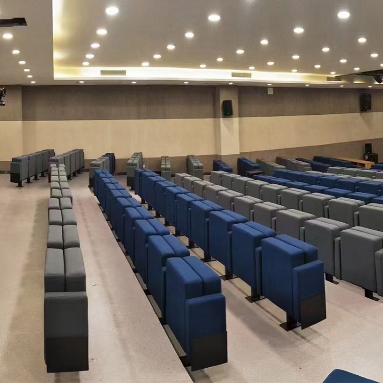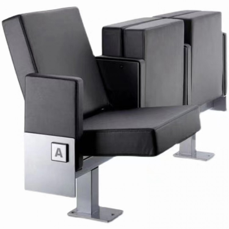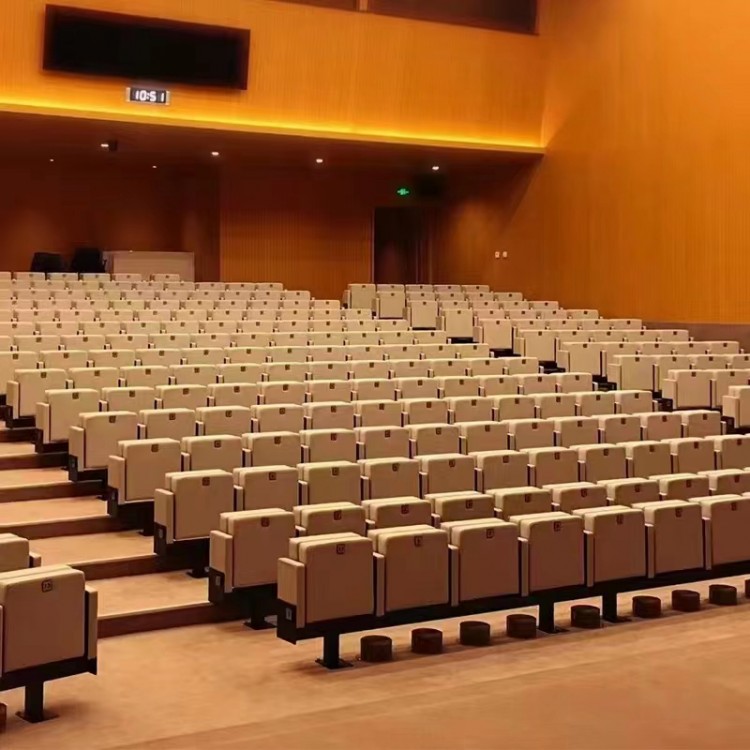 鋁合金腳旋轉(zhuǎn)式寫字板禮堂椅 座背實木 阻尼回位 選用于報告廳