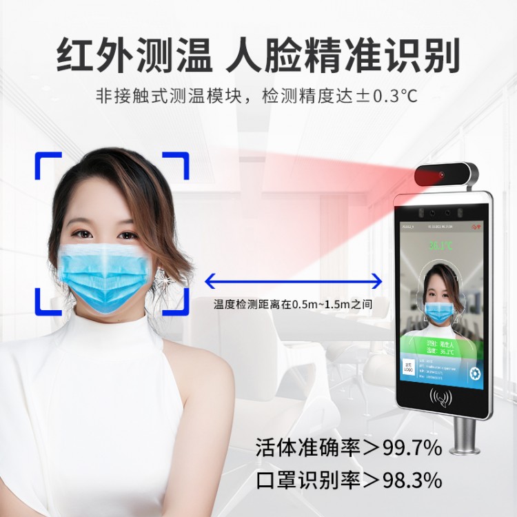 紅外線測溫儀一體機(jī)立式門口全自動(dòng)人手腕檢測量溫度槍熱成像儀器