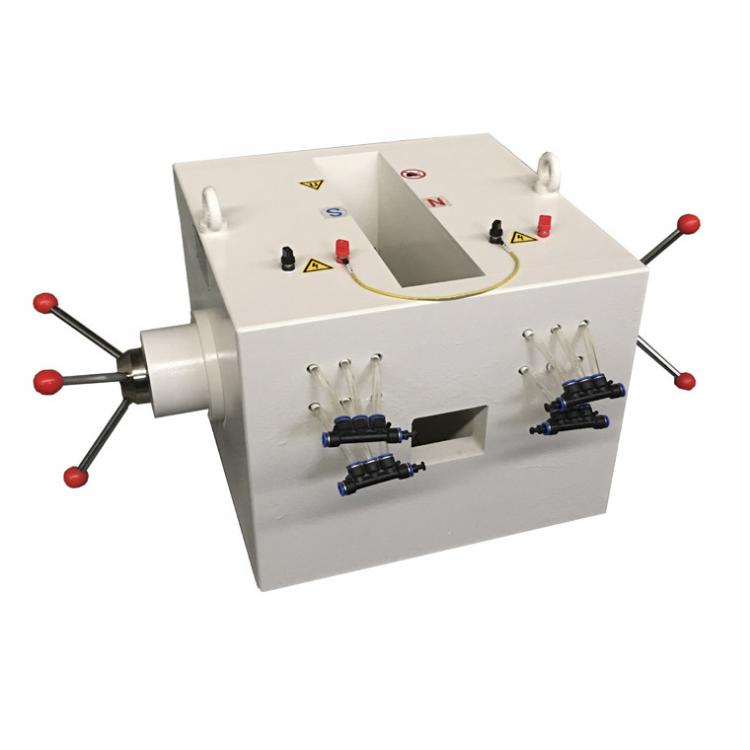 pem-0801mp磁場電磁鐵采用鎧甲式結(jié)構(gòu),重量有所減輕,漏磁小,電磁效率高,對外磁場干擾小,根據(jù)使用情況可在電磁場磁體的上下,前后開不同的使用窗口,窗口的大小可以指定。