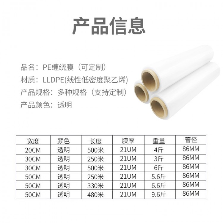 暖輝打包PE拉伸纏繞膜20cm/30cm/50cm透明拉伸打包膜防靜電拉伸纏繞膜