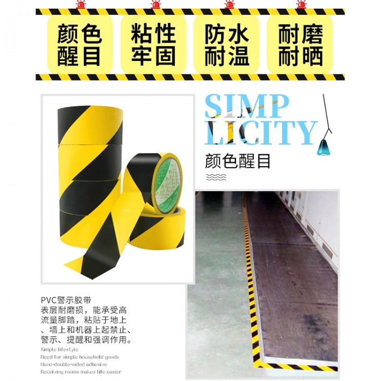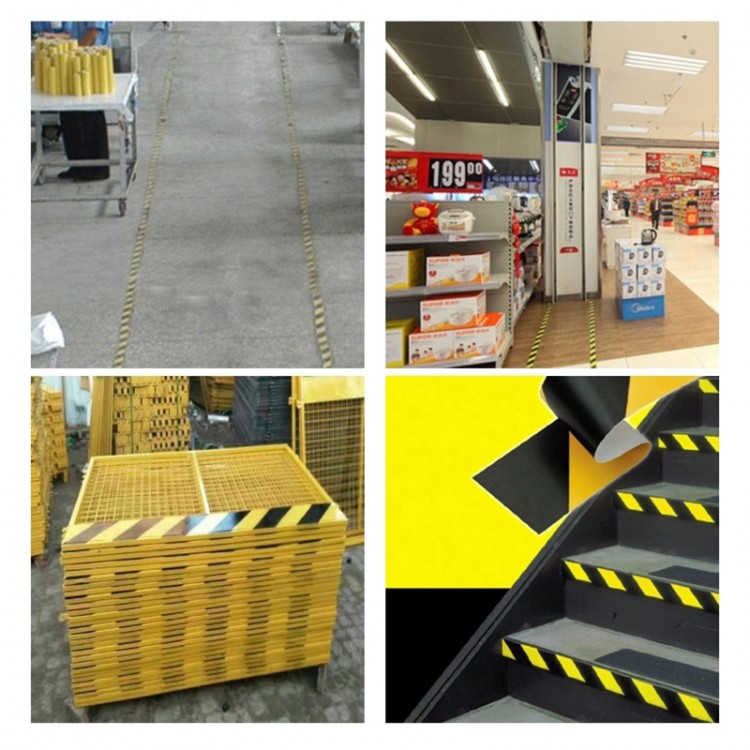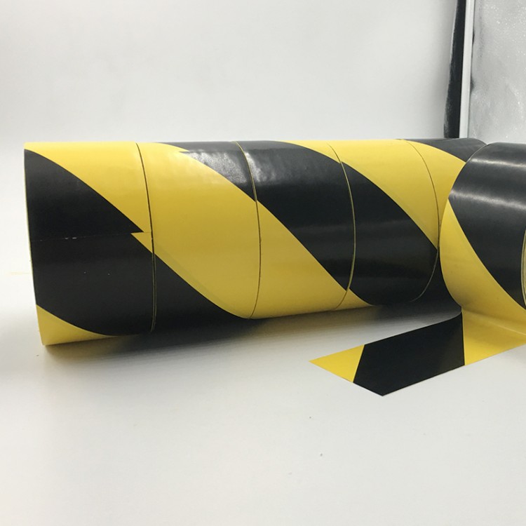 產(chǎn)品名稱:暖輝黑黃警示膠帶地面反光標識PVC警示黑黃色2.4寬膠帶無塵車間貼地標膠帶地下停車場耐磨斑馬劃線地板膠帶