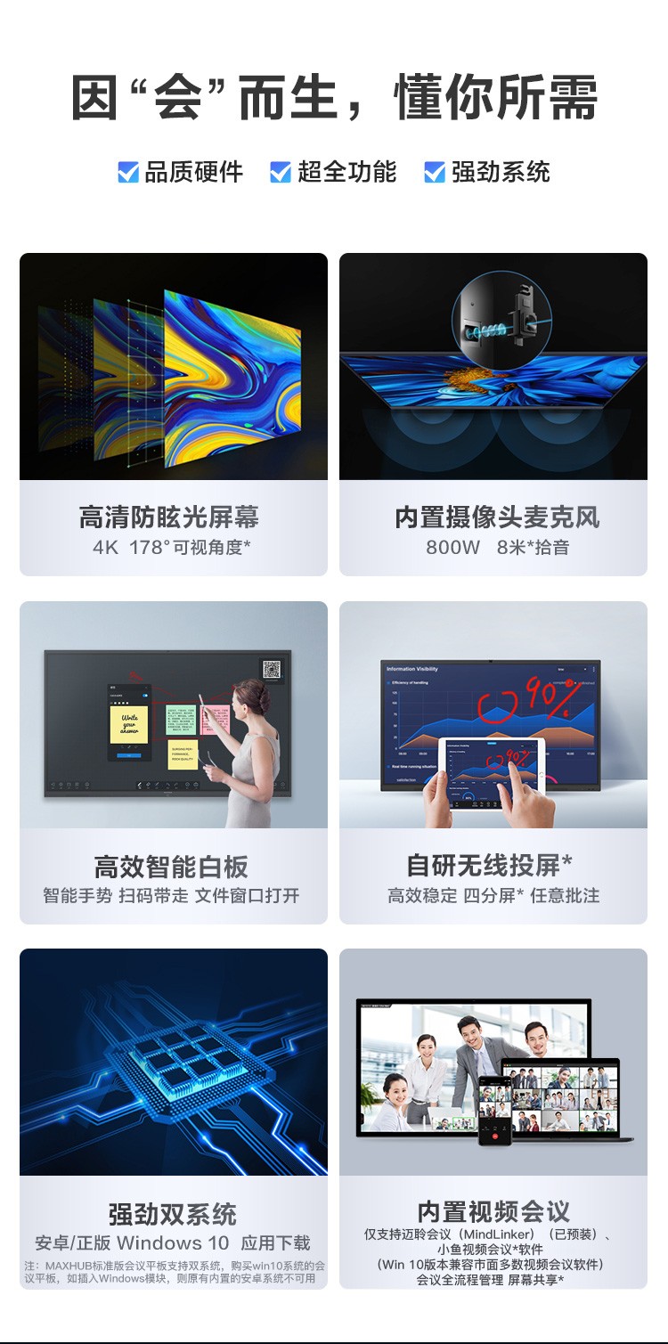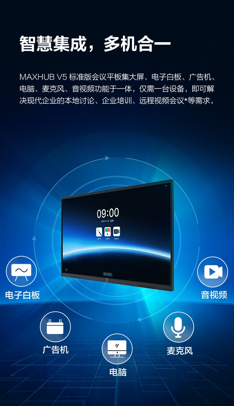 阿壩州MAXHUB會議平板經(jīng)銷商 MAXHUB V5標(biāo)準(zhǔn)版教學(xué)視頻會議平板一體機 標(biāo)準(zhǔn)版65英寸+i5四件套