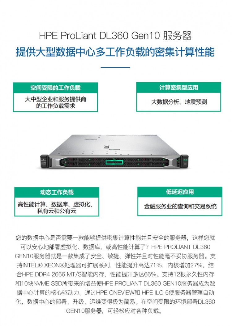 惠普服務(wù)器總代理_HPE DL360 Gen10 1U機(jī)架式 雙處理器主機(jī)