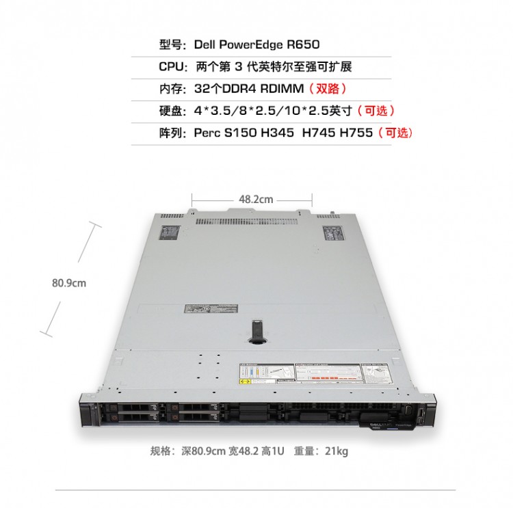 戴爾服務器總代理商 DELL R650 1U機架式 雙路CPU 機房托管服務器