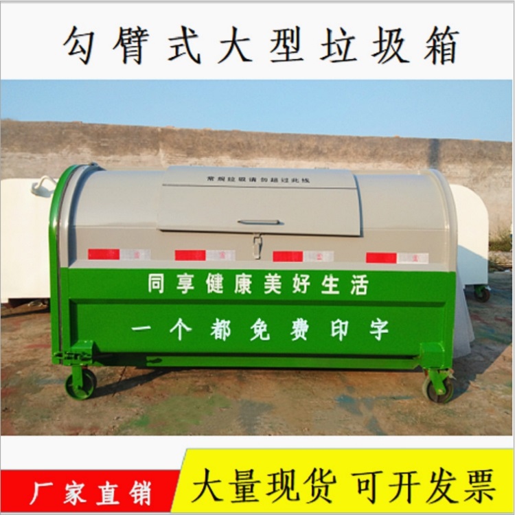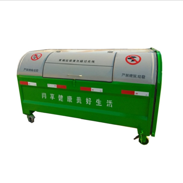 3、方便使用:箱體上方兩側(cè)有側(cè)蓋,可開啟、關(guān)閉,方便傾倒垃圾,前面有鉤臂,方便垃圾車裝載。后面有整體的蓋,此蓋可以是上下打開,也可以是左右打開,根據(jù)實(shí)際需要。垃圾箱的輪子可以是固定的輪子,也可以是萬向輪,根據(jù)實(shí)際需要設(shè)計(jì)。