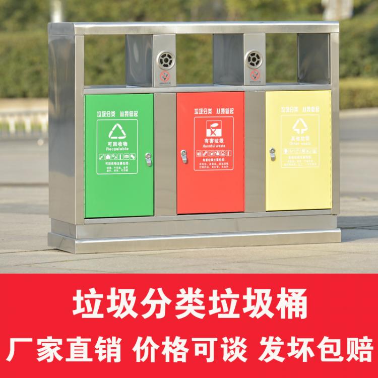 戶外垃圾桶不銹鋼大號環(huán)衛(wèi)果皮箱小區(qū)公園景區(qū)鋼木分類雙桶垃圾箱