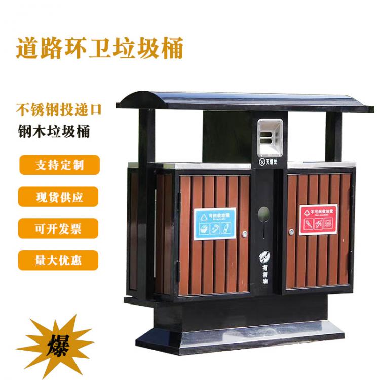戶外垃圾桶室外垃圾桶垃圾分類桶環(huán)衛(wèi)定制兩分類鋼木垃圾箱果皮箱