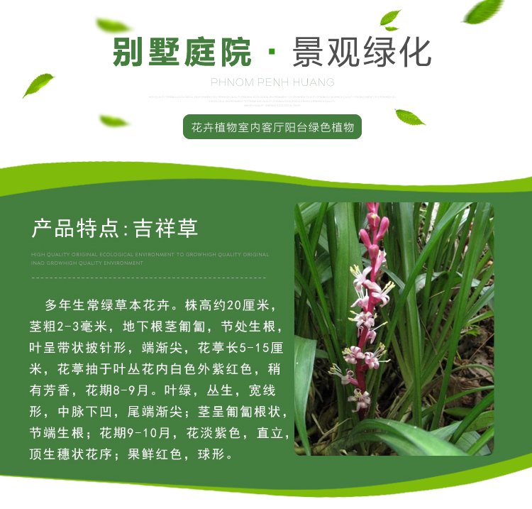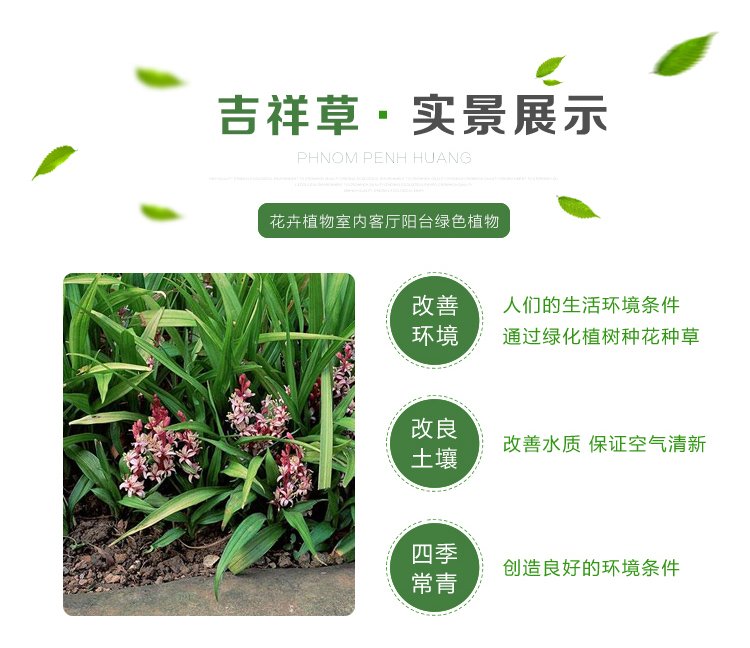 吉祥草植株造型優(yōu)美,葉色翠綠,耐寒、耐陰,裝入金魚缸或其他玻璃器皿中進(jìn)行水養(yǎng)栽培,擺放于吧臺、茶幾上,不失為一種精致、高雅的藝術(shù)品,亦可陶冶情操,放松心情。