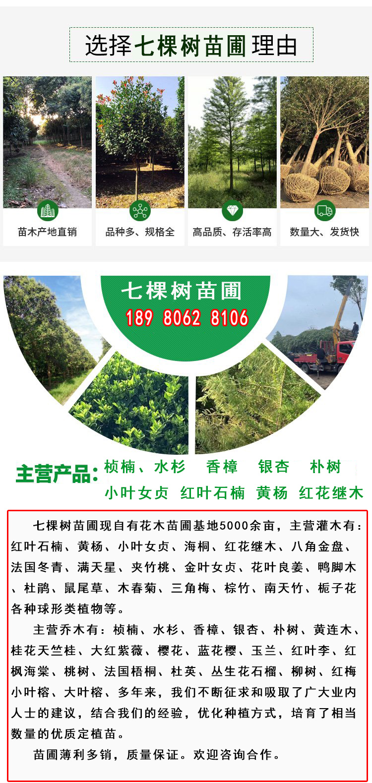 | 銷售紅楓,成都紅楓木基地,找成都七棵樹園林,成都周邊自有基地3000余畝常年批發(fā)供應10-50cm紅楓木地苗-紅楓木杯苗,成都紅楓木批發(fā)基地。自有苗圃價格優(yōu)惠,有多年生不等規(guī)格的紅楓,品種多,數(shù)量大。四川紅楓木基地大量銷售中,哪里有紅楓木多少錢一棵,可以電話聯(lián)系我們本文內(nèi)容有紅楓木圖片均是基地實拍,成都紅楓木價格,栽植時間成活率等相關(guān)介紹,成都七棵樹園林擁有大批紅繼木,歡迎大家前來購買。紅楓木價格,紅繼木報價,紅楓木圖片就找成都七棵樹園林 |