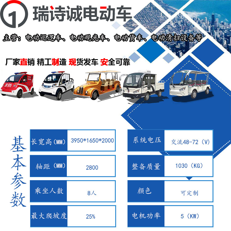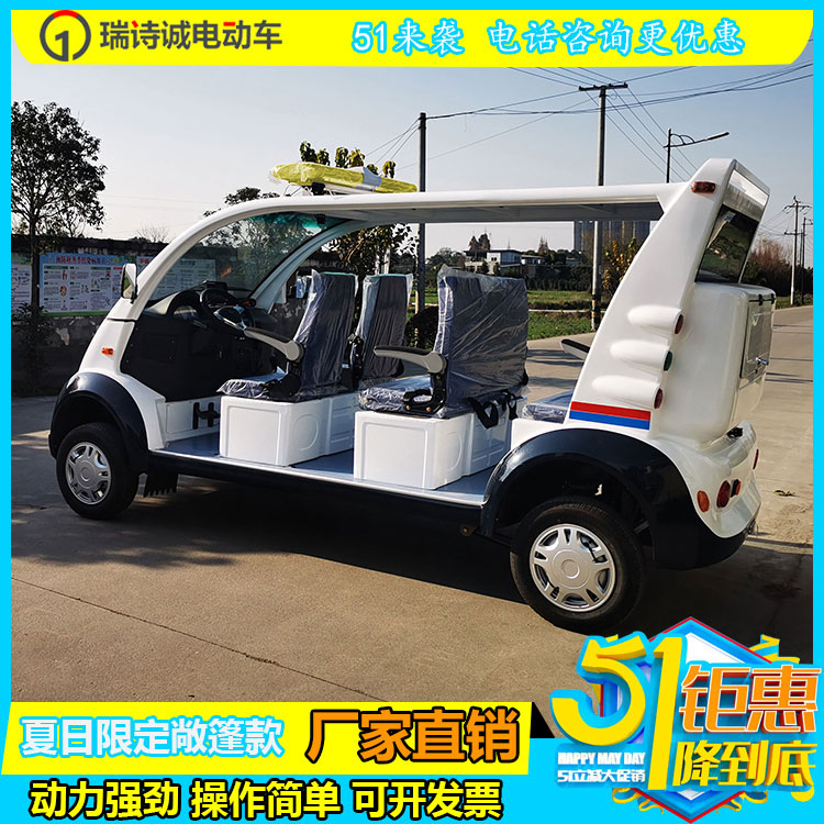 瑞詩(shī)城 新能源電動(dòng)巡邏車 夏日敞篷款 3排6-8座適用于廠區(qū) 社區(qū) 景區(qū)等多場(chǎng)景多路面 車身一體沖壓成型 麥弗遜獨(dú)立懸掛等配置質(zhì)保兩年
