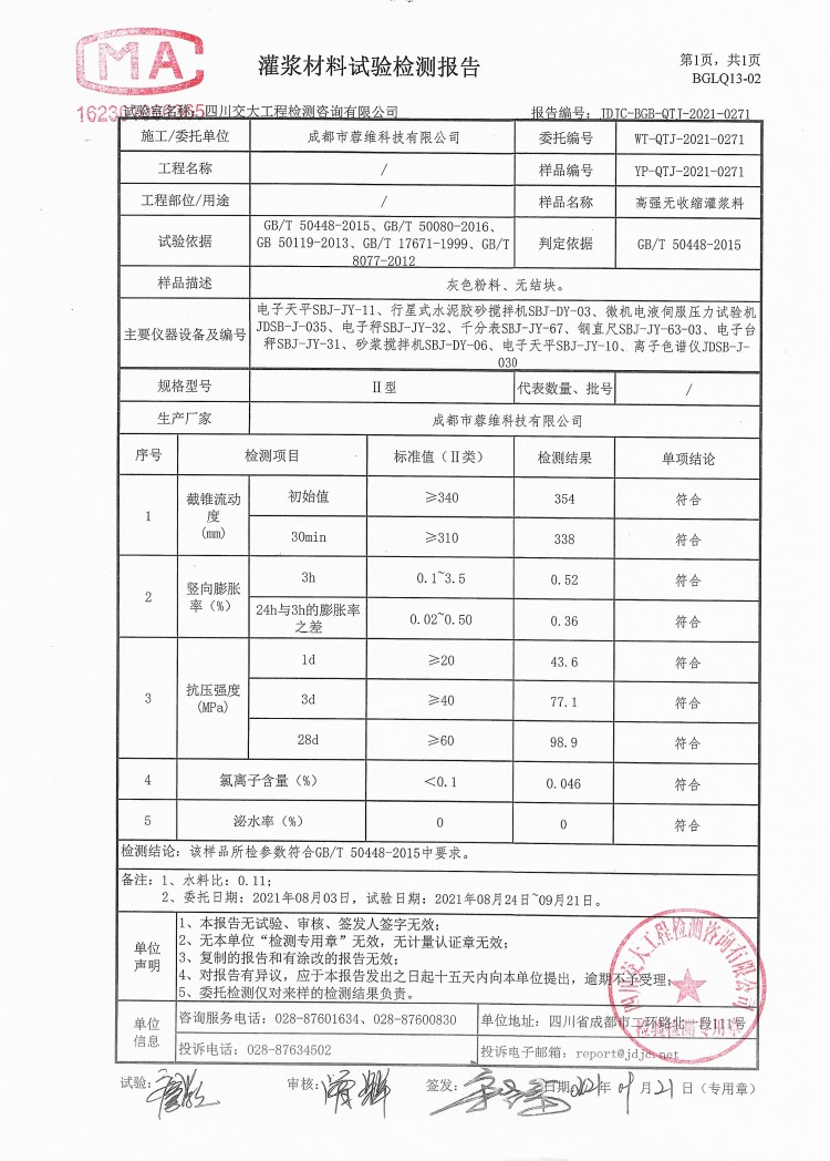 詳細信息 高強無收縮灌漿料的特點:1. 早強、高強,2. 自流性高,3. 微膨脹性,4. 可冬季施工,5. 耐久性強。其用途廣泛,適用于機器底座、地腳螺栓等設備基礎灌漿。建筑物的梁、板、柱、基礎、地坪和道路的補強、搶修、加固??蛇M行地腳螺栓和鋼筋的錨固及結構補強。 地鐵、隧道、地下等工程逆打法施工縫的嵌固。 以及鋼結構(鋼軌、鋼架、鋼柱等)與基礎固定連接的二次灌漿。
