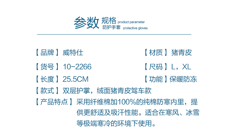 產(chǎn)品名稱:weldas/威特仕10-2266防凍抗寒勞保手套 電焊絨面豬皮駕車防護(hù)工作手套