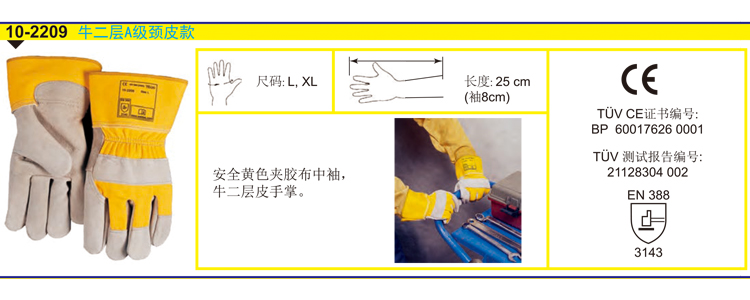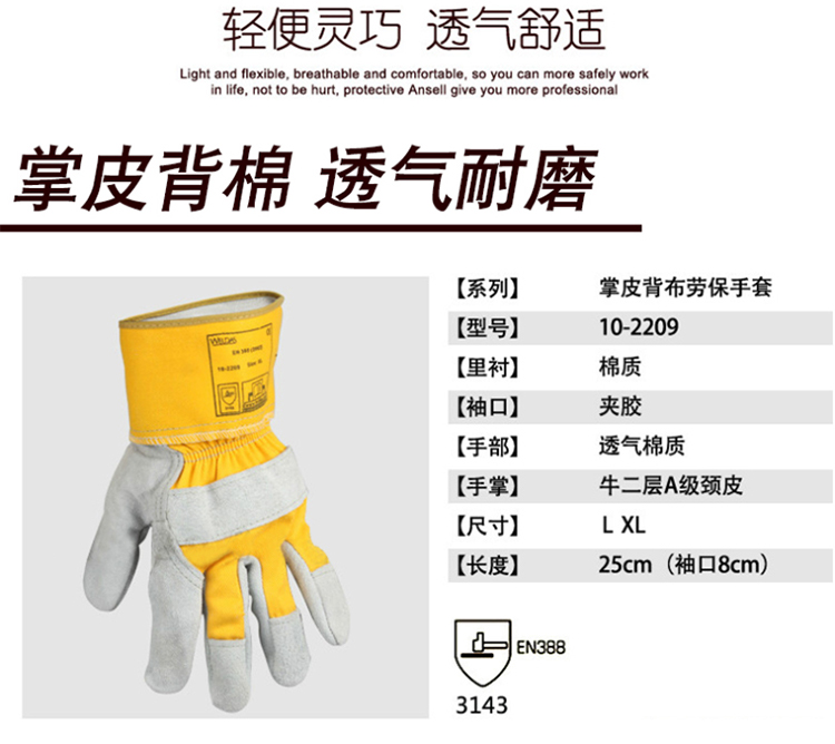 產(chǎn)品名稱:weldas/威特仕10-2209掌皮背布勞保手套 燒焊搬運(yùn)手套
