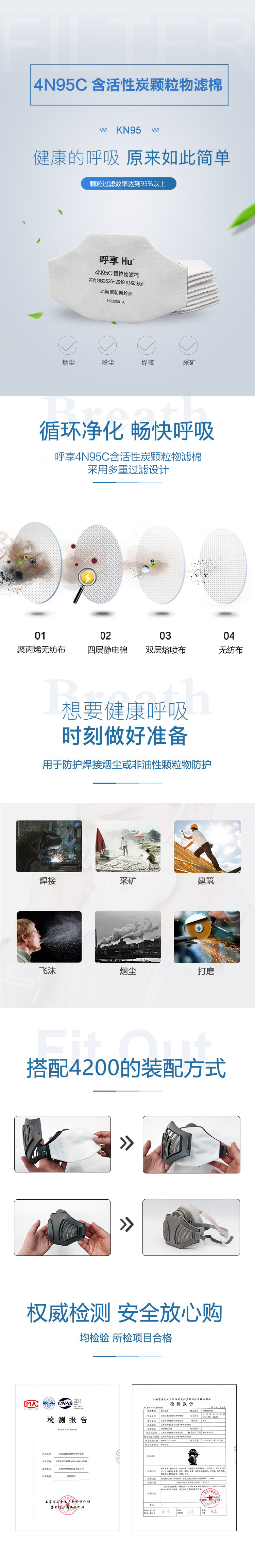 產品名稱:Hu/呼享4N95C活性炭顆粒物濾棉焊接鑄造打磨粉塵防護KN95去除有機蒸汽異味過濾棉