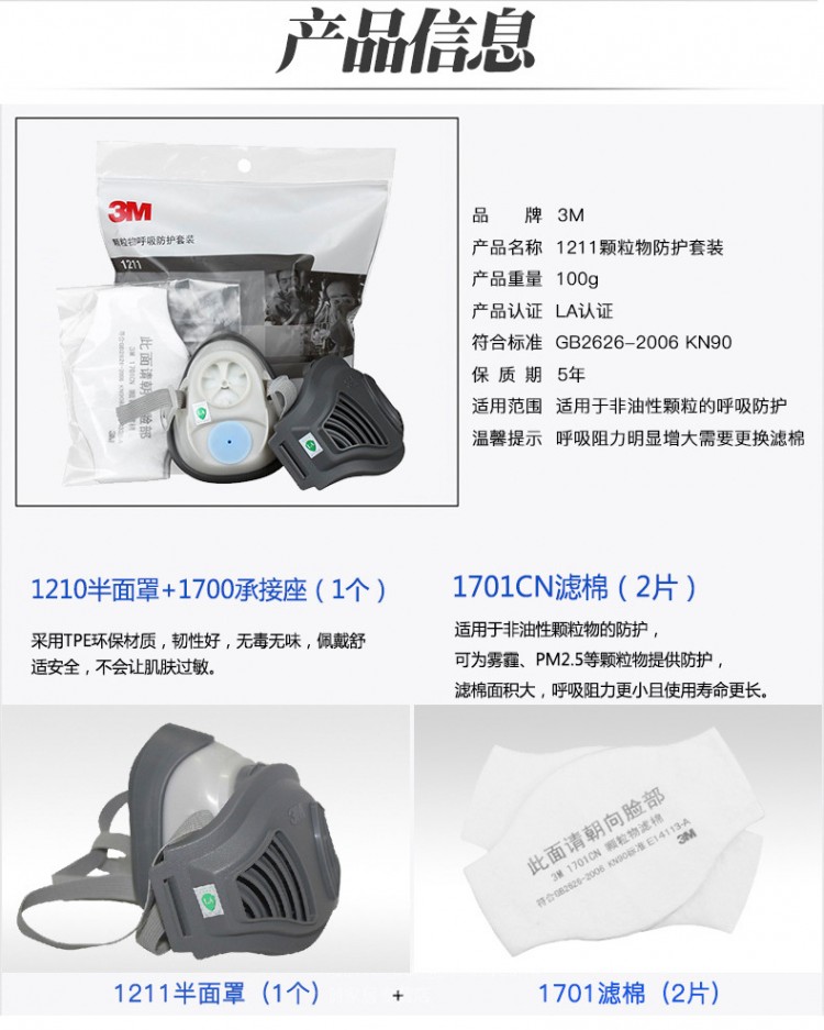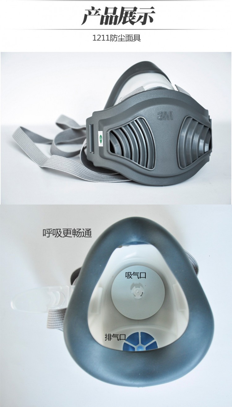 產(chǎn)品名稱:3M1211防灰塵面罩打磨呼吸防護工業(yè)粉塵口罩防顆粒物面具