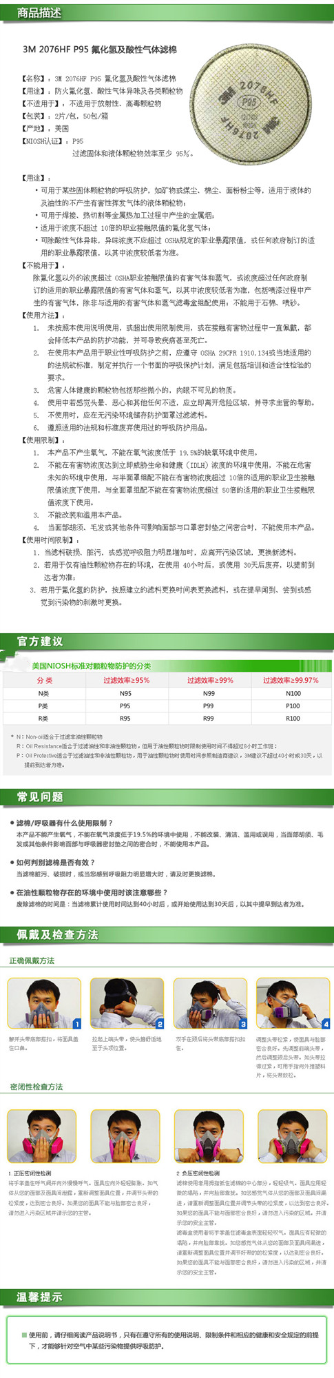 3M 2076CN 濾棉 P95顆粒物過(guò)濾棉 氟化氫 酸性氣體