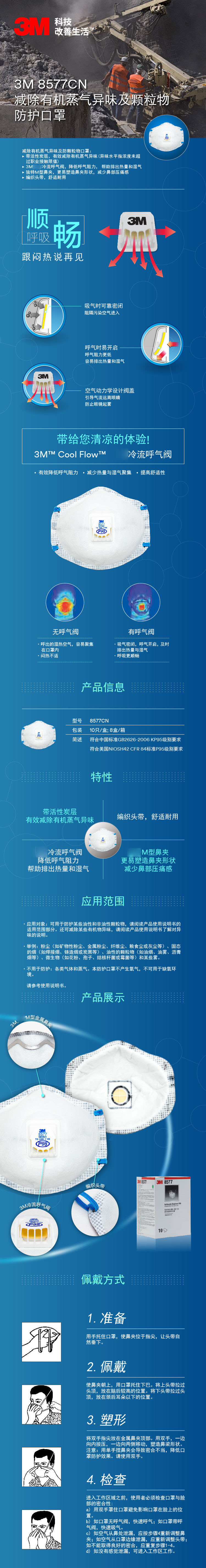產(chǎn)品名稱:3M 8577CN活性炭防有機(jī)蒸氣異防顆粒物霧霾pm2.5杯狀帶閥口罩