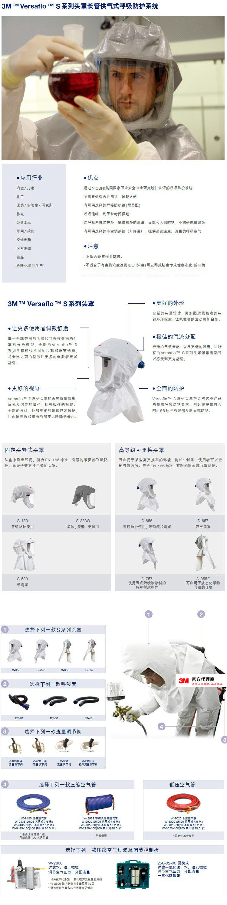 產品名稱:3M 電動送風頭罩 S-533L 長管供氣呼吸防護軟材質頭罩1個/箱
