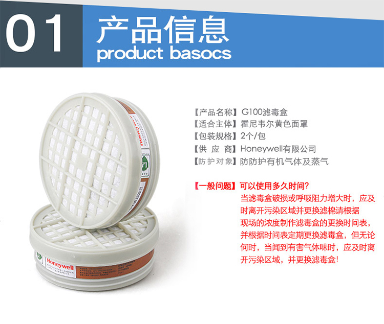 產(chǎn)品名稱:honeywell/霍尼韋爾G100 濾盒防護有機氣體蒸氣濾毒盒 呼吸面罩配件