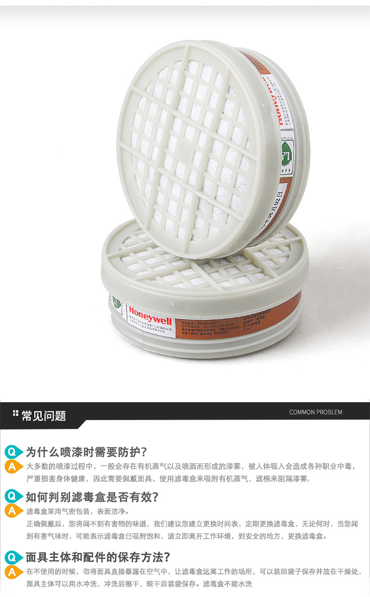 honeywell/霍尼韋爾G100 濾盒防護有機氣體蒸氣濾毒盒 呼吸面罩配件