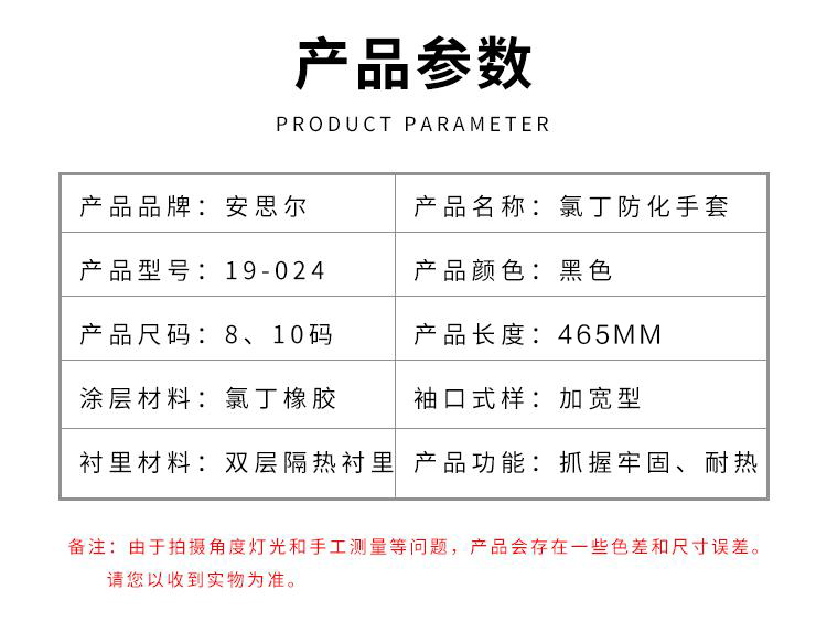 產(chǎn)品名稱:ansell/安思爾19-024氯丁橡膠手套 防化酸堿勞保防護手套