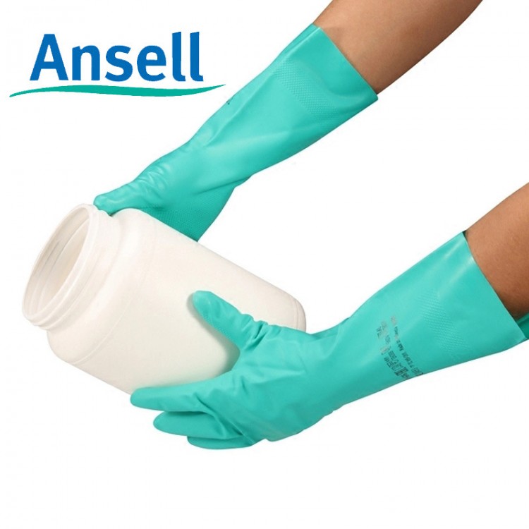 ansell/安思爾 37-676綠色丁腈手套 防化酸堿勞保防護(hù)手套 棉質(zhì)襯里可接觸食物