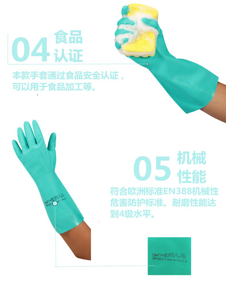 產(chǎn)品名稱:ansell/安思爾 37-676綠色丁腈手套 防化酸堿勞保防護(hù)手套 棉質(zhì)襯里可接觸食物