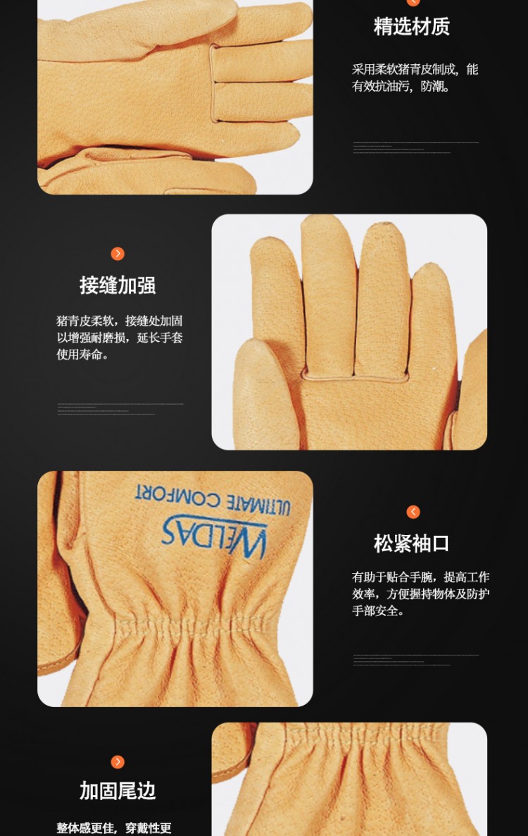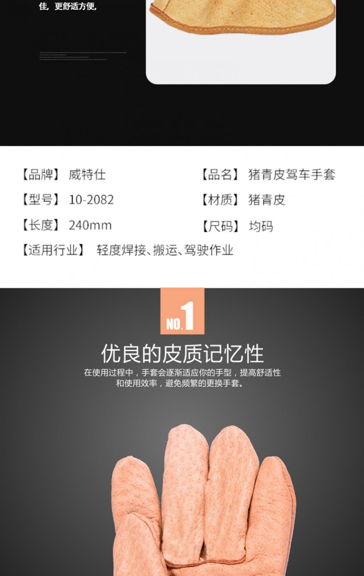 產(chǎn)品名稱:weldas/威特仕10-2082豬青皮駕車手套抗油污防潮
