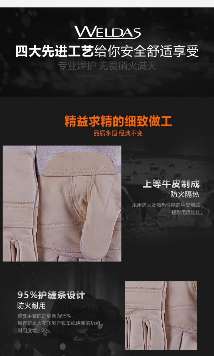 威特仕WELDAS10-9750電焊手套系列牛青駁掌直拇指款