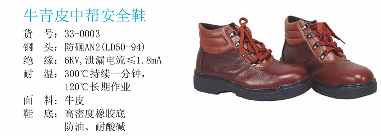 weldas/威特仕33-0003牛青皮中幫安全鞋 防砸防刺穿勞保鞋