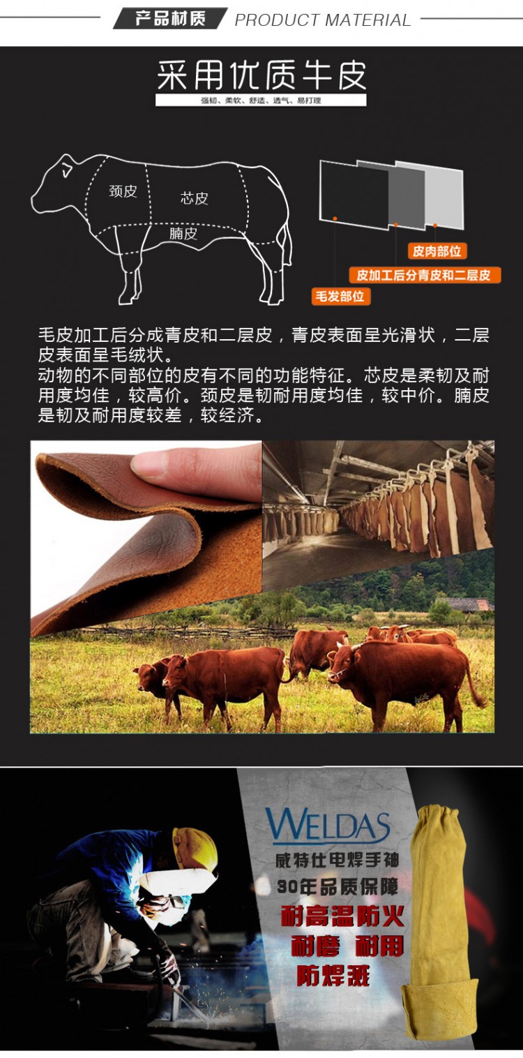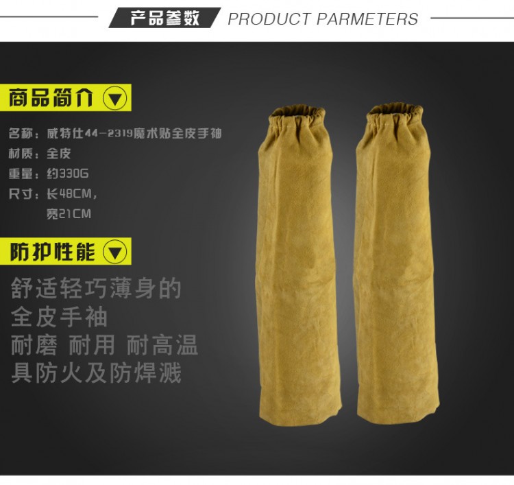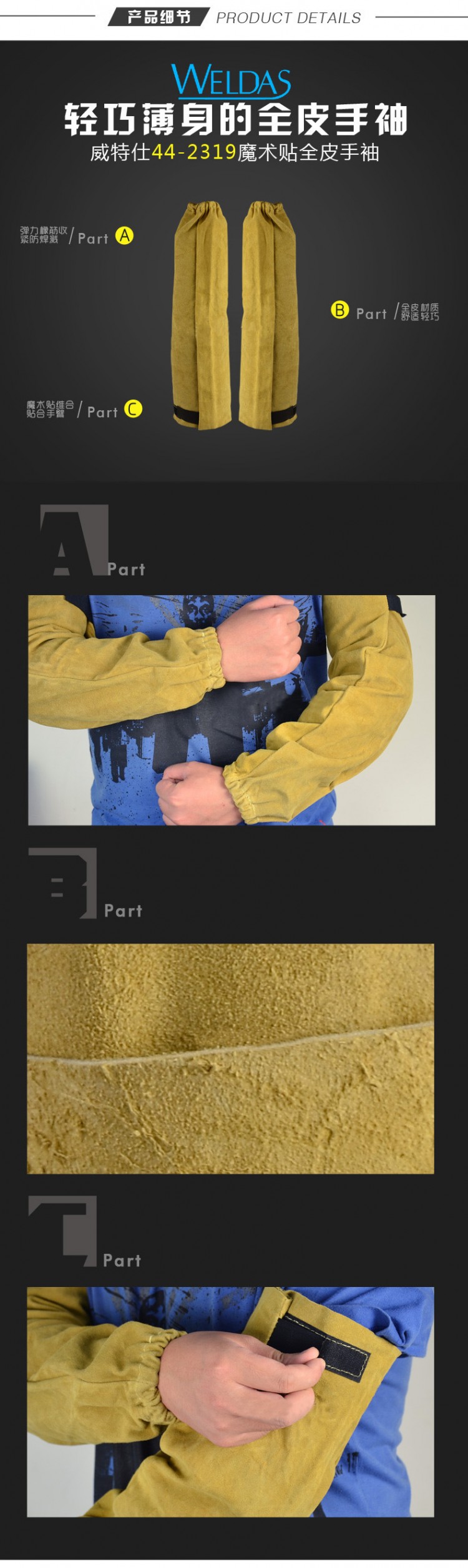 產(chǎn)品名稱:WELDAS威特仕 44-2319 牛皮焊接袖套 防飛濺手袖 隔熱 電焊袖套