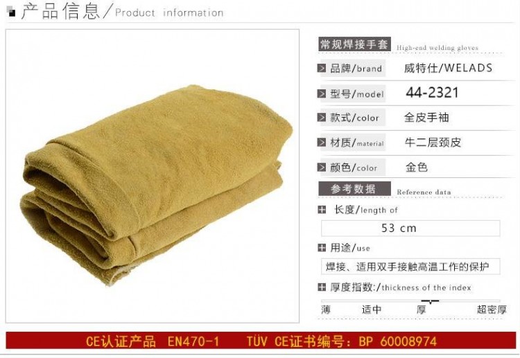 產(chǎn)品名稱:威特仕44-2321焊接袖套 牛二層芯皮手袖 防火阻燃電焊袖套