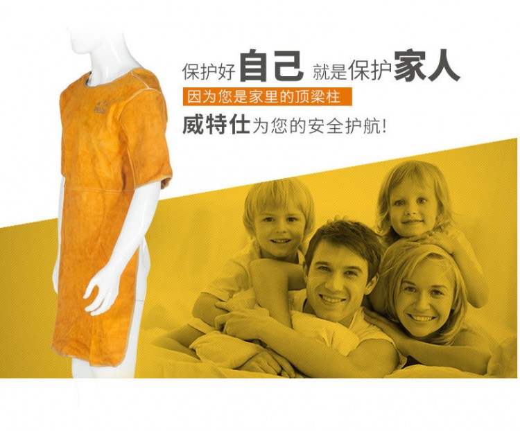 威特仕 44-2336電焊圍裙 焊接牛皮圍裙 阻燃焊接防護(hù)服 短袖款