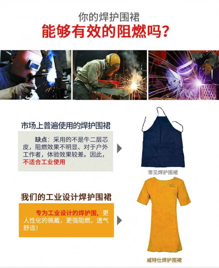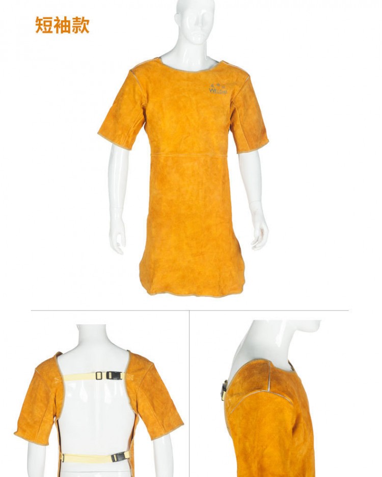 產(chǎn)品名稱:威特仕 44-2336電焊圍裙 焊接牛皮圍裙 阻燃焊接防護(hù)服 短袖款