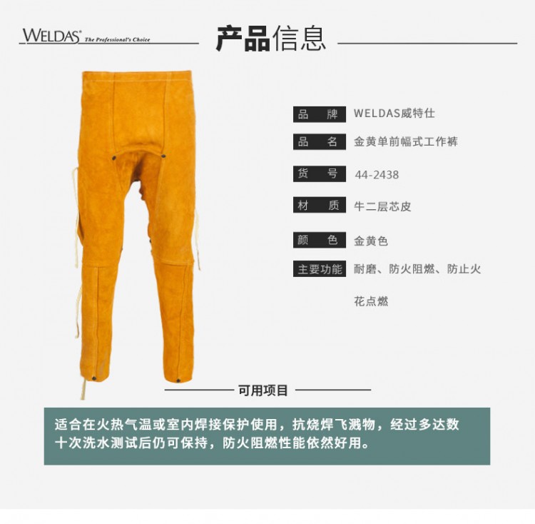 產(chǎn)品名稱:威特仕44-2438電焊服牛皮防火花飛濺阻燃工作圍褲焊工服