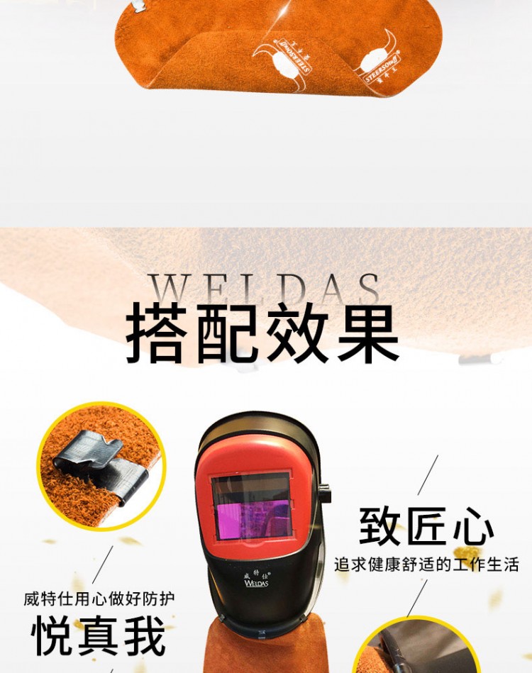 威特仕44-7000牛皮頭盔圍裙 電焊帽面具燒焊 焊接焊工防護用品 裝備配件