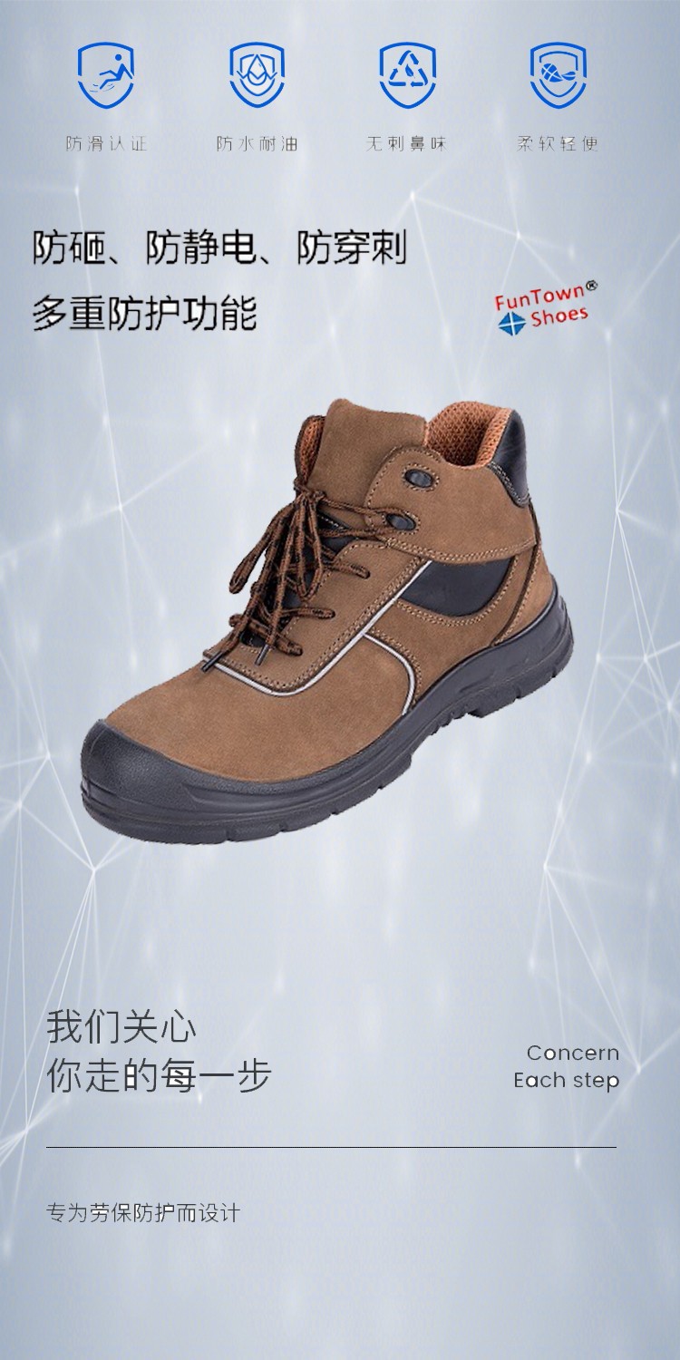 產(chǎn)品名稱:funtownshoes/范特仕6206EHP 防砸防滑防穿刺鞋 絕緣鞋子 頭層牛巴皮皮鞋 復(fù)合包頭 中幫棕色皮鞋