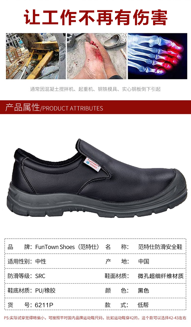 產(chǎn)品名稱:funtownshoes/范特仕6211P 2.0毫米超纖復(fù)合包頭安全鞋 防砸防滑防靜電勞保鞋 防穿刺鞋
