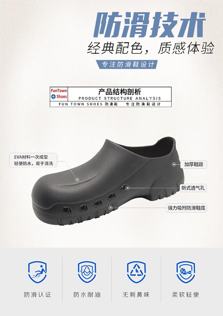 產(chǎn)品名稱:funtownshoes/范特仕7101 黑色帶孔廚師鞋 EVA+橡膠 防滑橡膠大底廚師鞋