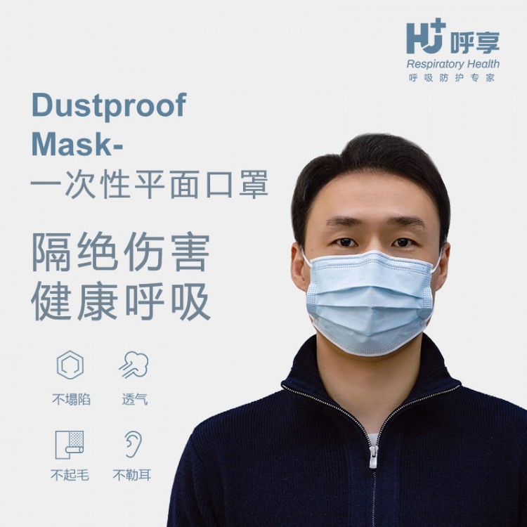 產(chǎn)品名稱:Hu/呼享HU910 一次性平面口罩 熔噴布三層防護(hù) 防塵成人透氣