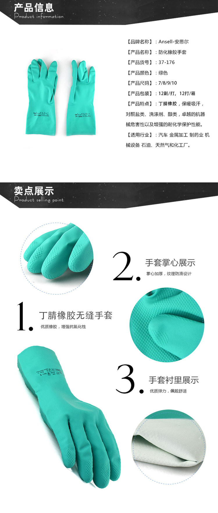 產(chǎn)品名稱:Ansell/安思爾37-176 丁腈橡膠工業(yè)勞保手套 勞保用品