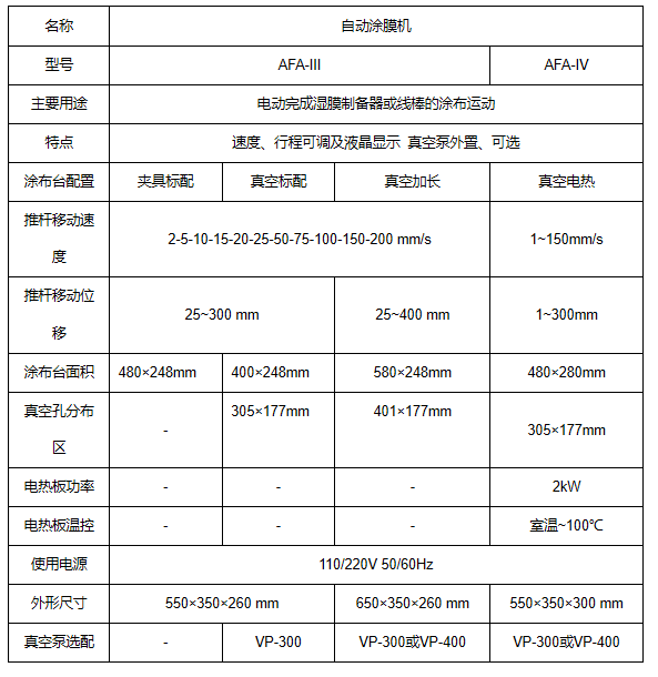 AFA-III本機有可拆卸的“真空涂布臺”和“夾具涂布臺”二種可選配置,供客戶定購時選擇。真空涂布臺配置需使用外置式真空泵(操作界面的插座開關可用于控制真空泵開停)。本機的涂布推桿可適用各種形狀的制備器,線棒推桿適用本公司生產(chǎn)的10mm芯軸線棒(從XB-12到XB-200)。