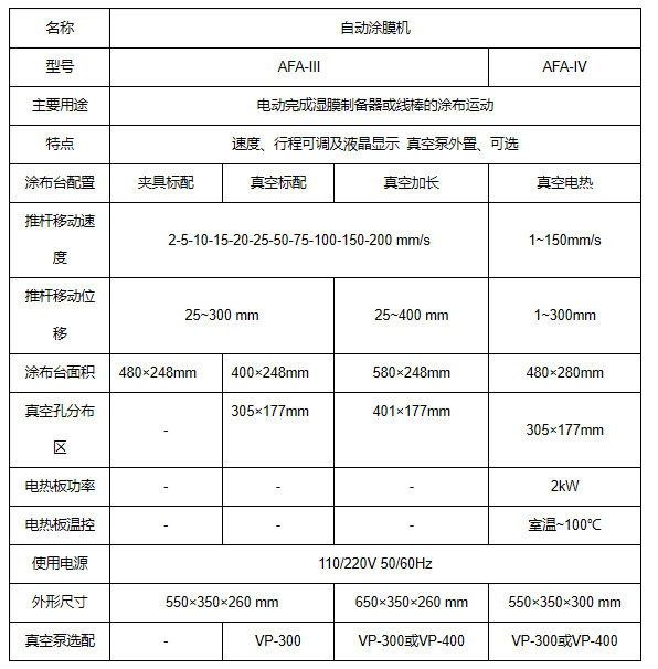 AFA-III本機(jī)有可拆卸的“真空涂布臺(tái)”和“夾具涂布臺(tái)”二種可選配置,供客戶定購(gòu)時(shí)選擇。真空涂布臺(tái)配置需使用外置式真空泵(操作界面的插座開(kāi)關(guān)可用于控制真空泵開(kāi)停)。本機(jī)的涂布推桿可適用各種形狀的制備器,線棒推桿適用本公司生產(chǎn)的10mm芯軸線棒(從XB-12到XB-200)。