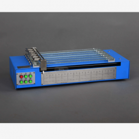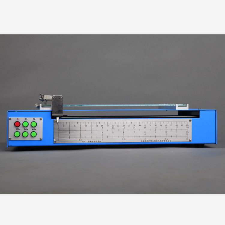 儀器采用步進(jìn)電機(jī)驅(qū)動,可提供精確的移動控制。六個劃針夾安裝在滑架上,通過滑架的移動帶動劃針在涂布有新濕膜的玻璃片上移動。行程結(jié)束后儀器會自動停止。向上抬起滑架后側(cè)下部的壓板就能手動移動滑架進(jìn)行復(fù)位。儀器的前端裝有便于進(jìn)行移動距離和移動時間換算的標(biāo)尺。儀器具有3~48小時定時共五檔不同的移動速度選擇。