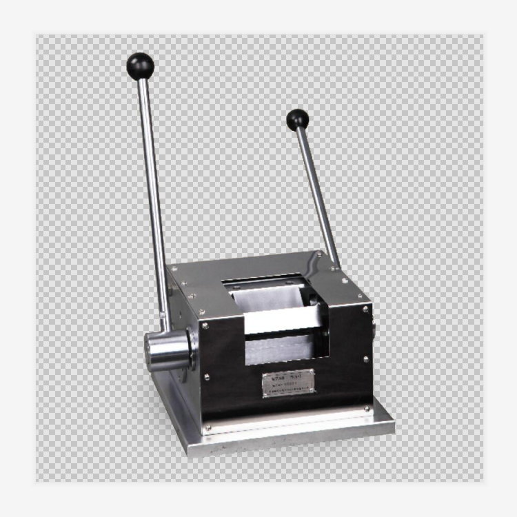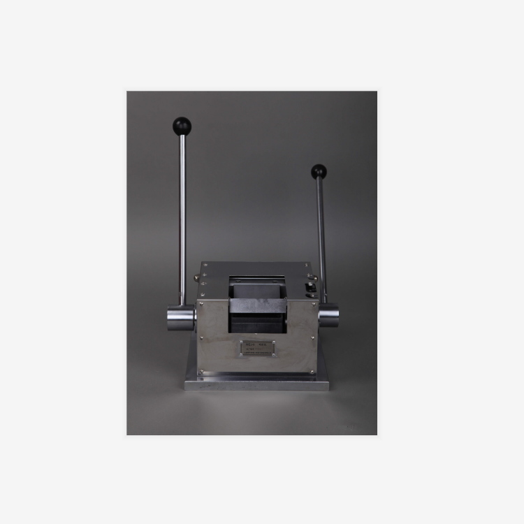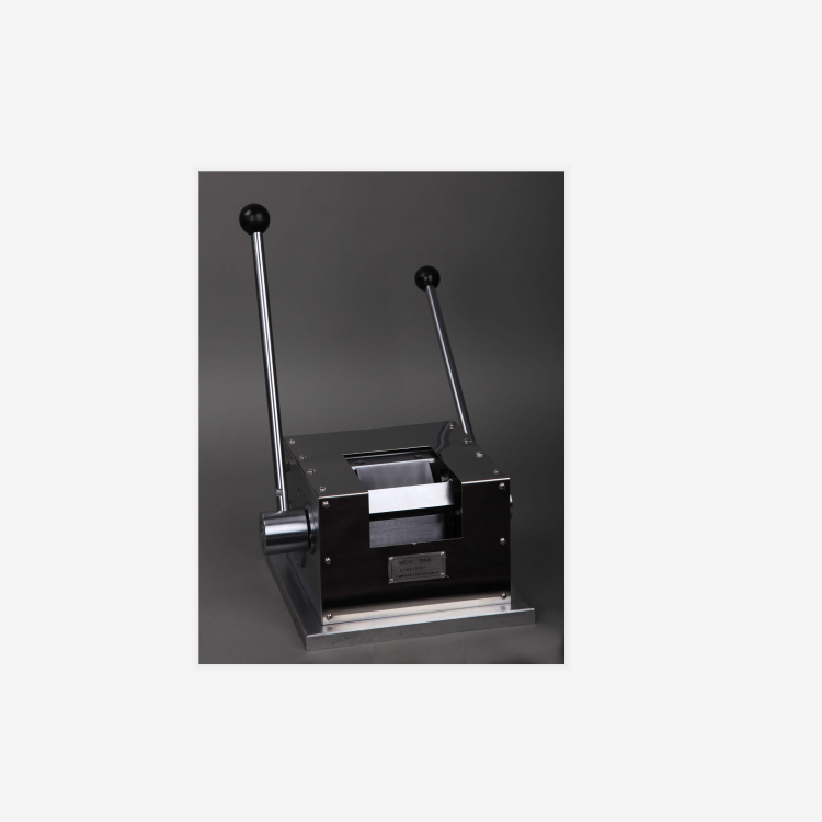 2.將儀器右邊的手柄轉(zhuǎn)動一個角度,使當(dāng)中三角形壓塊與下邊的墊塊空開距離,將做好的試板放入,注意試板應(yīng)平行放入并且放入的距離適中,再轉(zhuǎn)回右邊手柄,使三角壓塊壓緊試板。