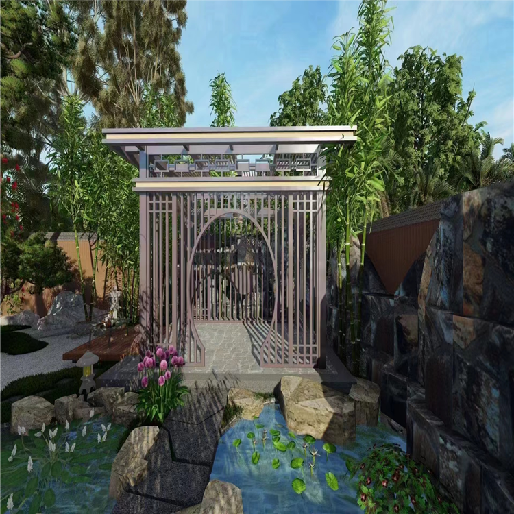 鋁合金新中式?jīng)鐾?款式現(xiàn)代簡約 公園別墅庭院可用 必飾達(dá)