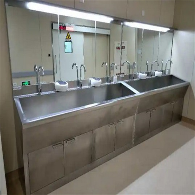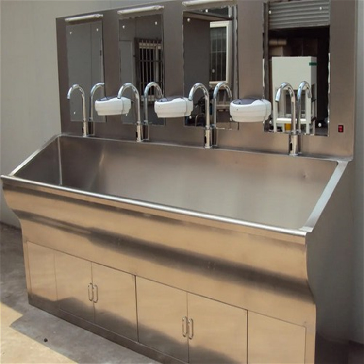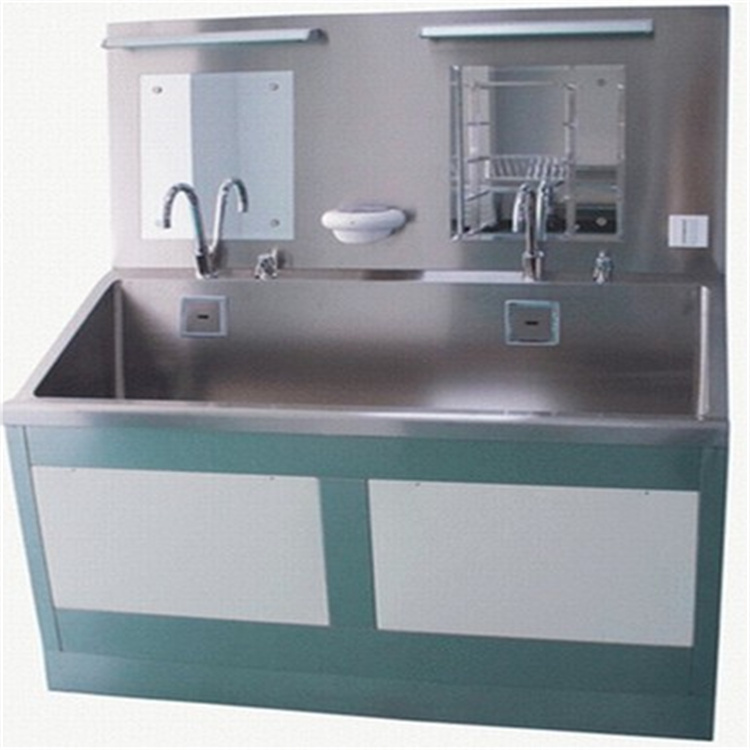 醫(yī)用洗手池又稱手術(shù)室洗手池,廣泛運(yùn)用在手術(shù)室、無(wú)菌室、實(shí)驗(yàn)室、等高衛(wèi)生要求場(chǎng)所??蓪⒉《緸V掉,醫(yī)用洗手池分為單人位、雙人位、三人位、四人位??煞菢?biāo)制作,安全可靠。手術(shù)室洗手池為手術(shù)醫(yī)務(wù)人員洗手專用設(shè)備,高級(jí)sus304不銹鋼制造,槽身以人體工程學(xué)設(shè)計(jì),靜音防濺,國(guó)際標(biāo)準(zhǔn),園弧結(jié)構(gòu),鵝頸型 水龍頭,保證清潔,流量500l/h,采用0.1μm超濾膜,可將至毒病菌全部濾掉,同時(shí)采用雙柱超濾組件,具備反沖技術(shù),可長(zhǎng)期使用。