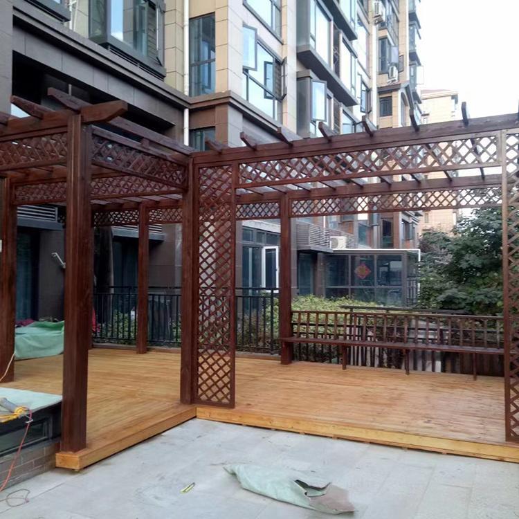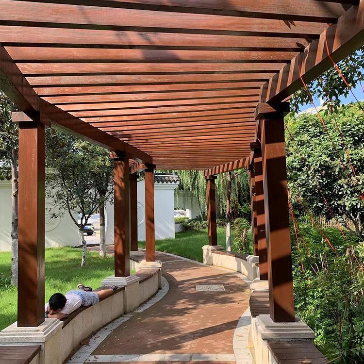 規(guī)格:防腐木花架造型靈活,根據(jù)場地及需求合理設(shè)計,高度參考人體工程學(xué)應(yīng)設(shè)置在2.5-3米之間。
