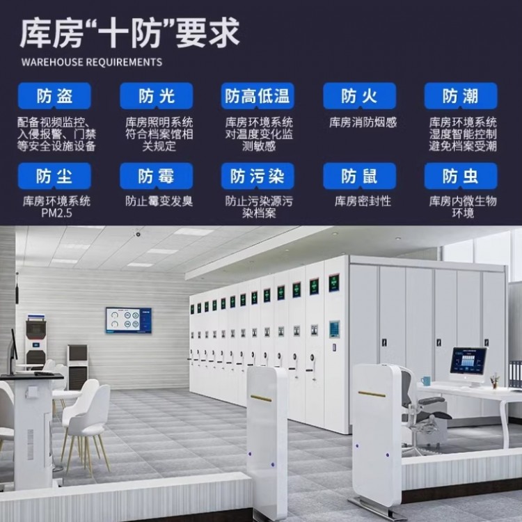 十防智能密集架 恒溫恒濕防塵智慧智能檔案室?guī)霷FID檔案密集柜
